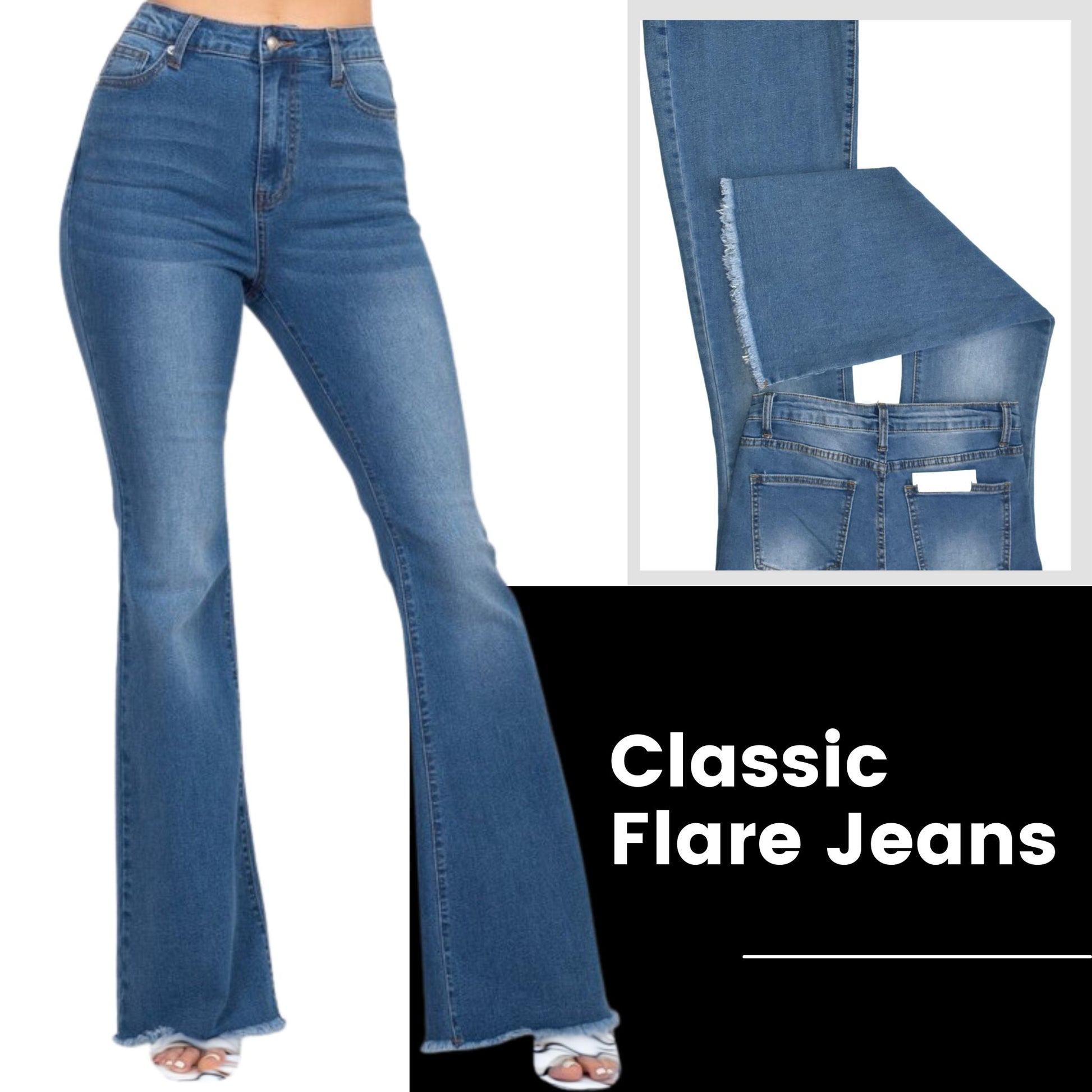 Elevate in style with Classic BB Jeans—modern, precise buttons, strategic pockets, raw hem, and sleek zipper. High waist, elastic fabric, firm shaping, flattering curves.
