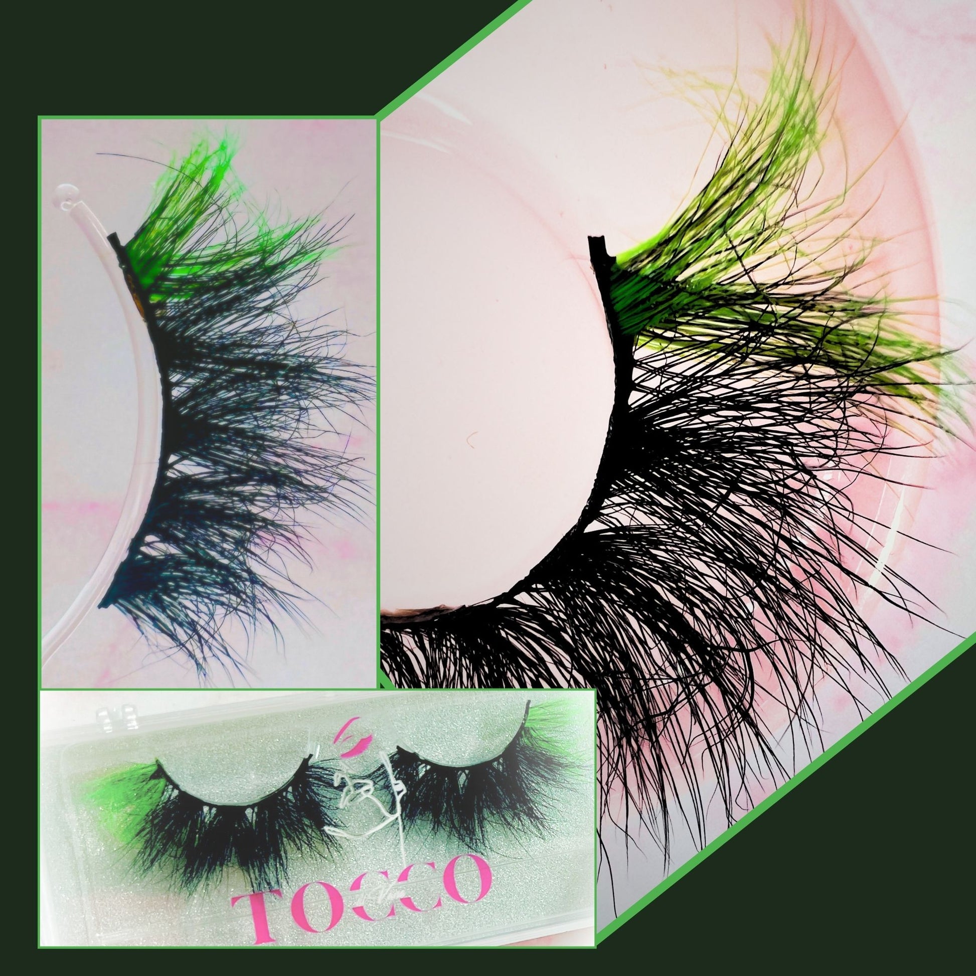 Get ready to wow everyone with these 3D luxury mink lashes! The fierce blend of green and black delivers a dramatic look that will make a statement.