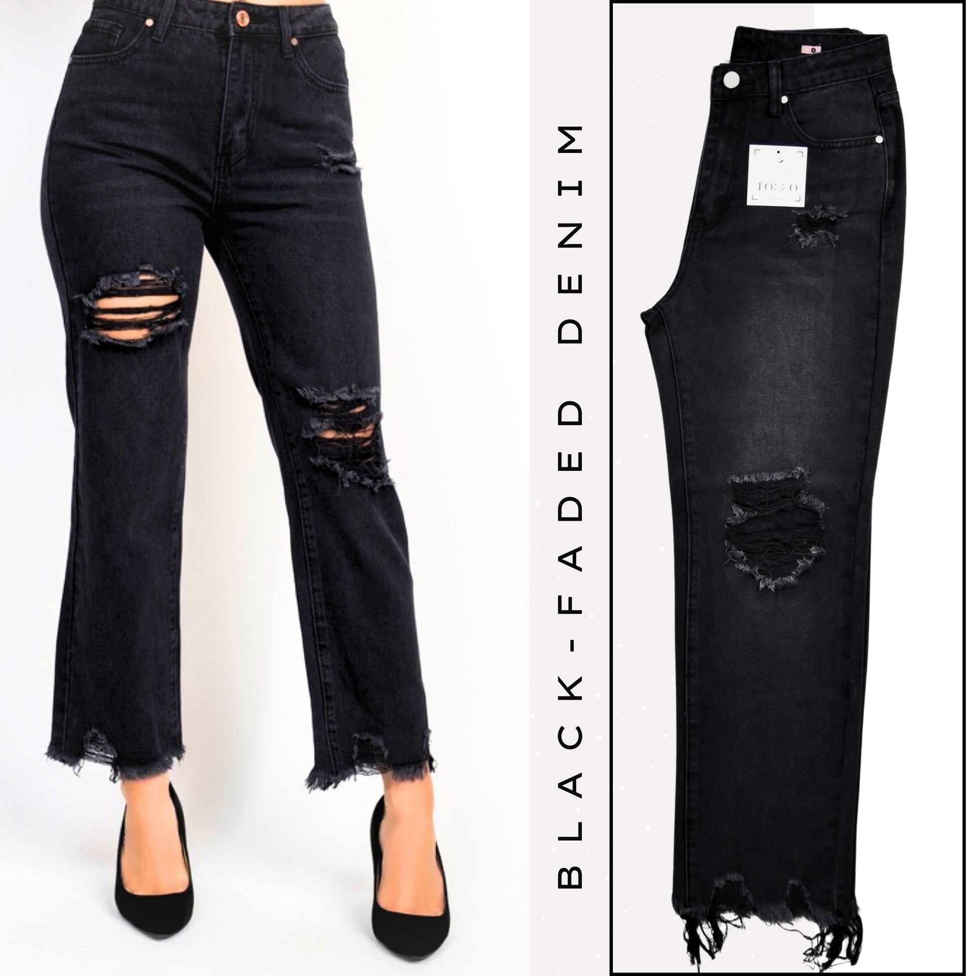 Our Enigmatic Faded Grey destroyed Jeans with Raw Hems take your style to the next level. Made for the bold and elegant, these High-Rise, straight-fit jeans blend modern chic with durability. Perfect for those looking to make a statement, they're a standout addition to any wardrobe.